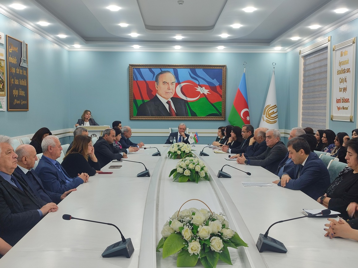 Gəncə Dövlət Univesitetinin rektoru Yusif Yusibov giriş sözü ilə çıxış edərək 1992-ci il fevralın 25-dan 26-na keçən gecə Xocalıda törədilən faciədə Azərbaycan xalqının başına gətirilən müsibətlərdən, bu kütləvi qırğında yüzlərlə insanın vəhçicəsinə qətlə yetirilməsindən, yandırılmasından və girov götürülməsindən danışıb. Bildirib ki, Ümummilli Lider Heydər Əliyevin qeyd etdiyi kimi, Xocalı soyqırımı öz ağlasığmaz qəddarlığı ilə bəşər tarixində vəhşilik aktıdır. 1992-ci ildə Ermənistan silahlı qüvvələri beynəlxalq hüququn norma və prinsiplərini kobudcasına pozaraq keçmiş sovet ordusunun Xankəndidə yerləşən 366-cı alayının iştirakı ilə Xocalı şəhərinə hücum etdi və dinc əhaliyə misli görünməmiş qəddarlıqla divan tutdu, Xocalı şəhəri işğal nəticəsində xarabalığa çevrildi. Xocalıda 613 nəfər qətlə yetirildi, yüzlərlə insan yaralandı, minlərlə sakin əsir və girov götürüldü. Bu rəqəmlər sadəcə statistika deyil – hər biri yarımçıq qalmış bir həyatın, dağıdılmış ailənin, sönmüş ümidin ifadəsidir.