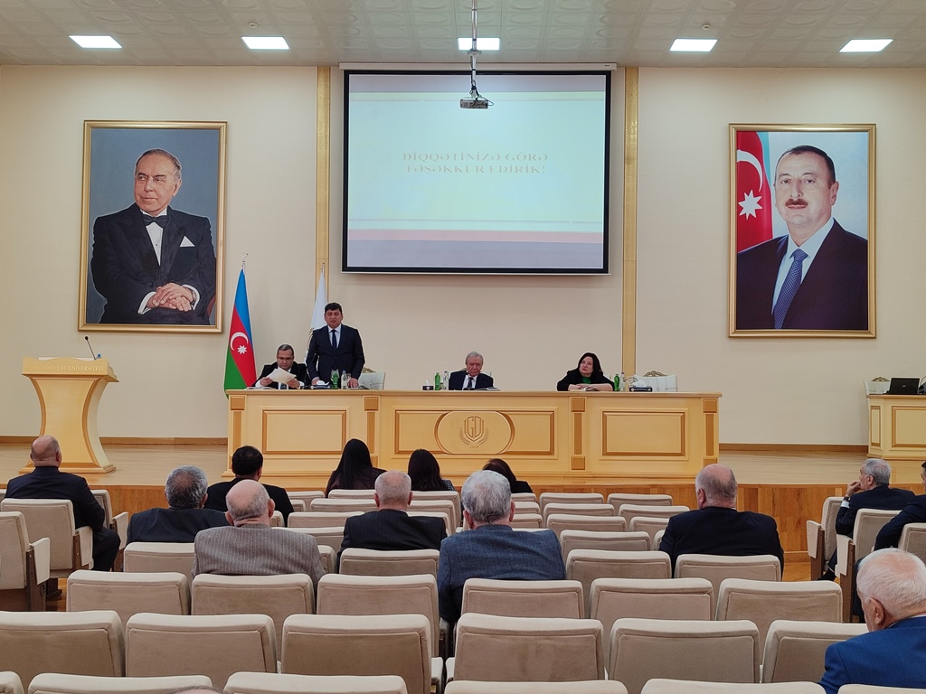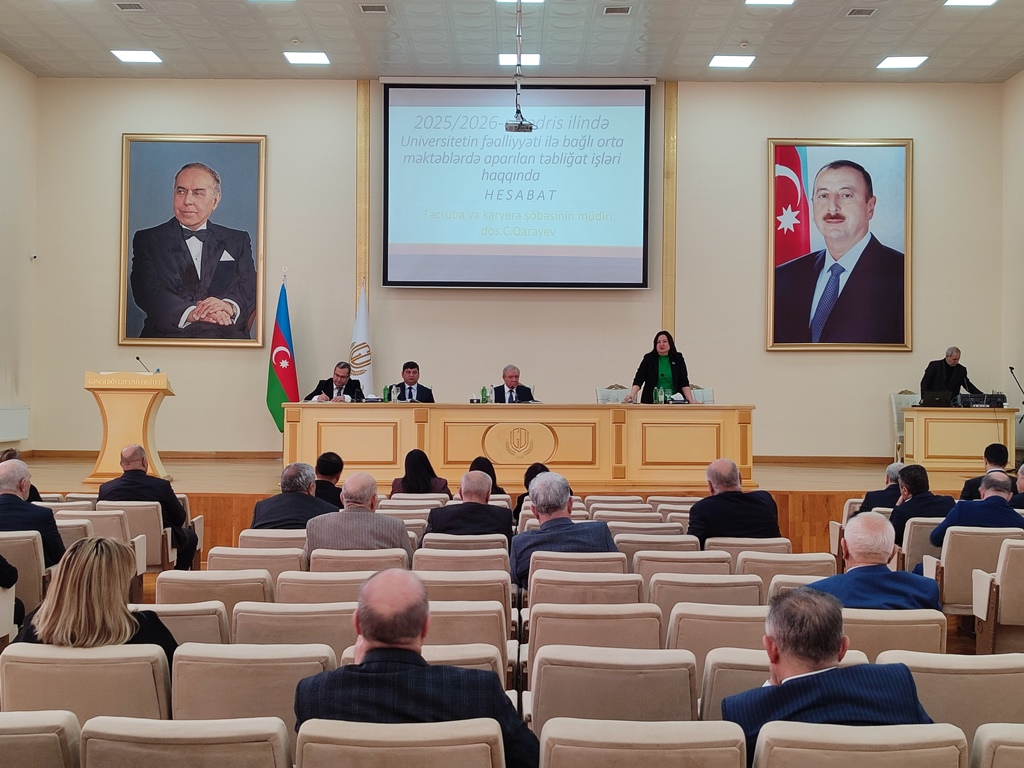 Daha sonra Universitetin Baş mühasibi Teyyub Tağıyevin Mühasibatlıq şöbəsinin 2025-ci ildə universitetin maliyyə fəaliyyəti və 2026-ci ildə nəzərdə tutulan maliyyə xərcləri haqqında hesabatı, eləcə də Təcrübə və karyera şöbəsinin müdiri Cabbar Qarayevin Universitetin fəaliyyəti ilə bağlı orta məktəblərdə aparılan təbliğat işləri barədə ətraflı hesabat məruzəsi dinlənilib.