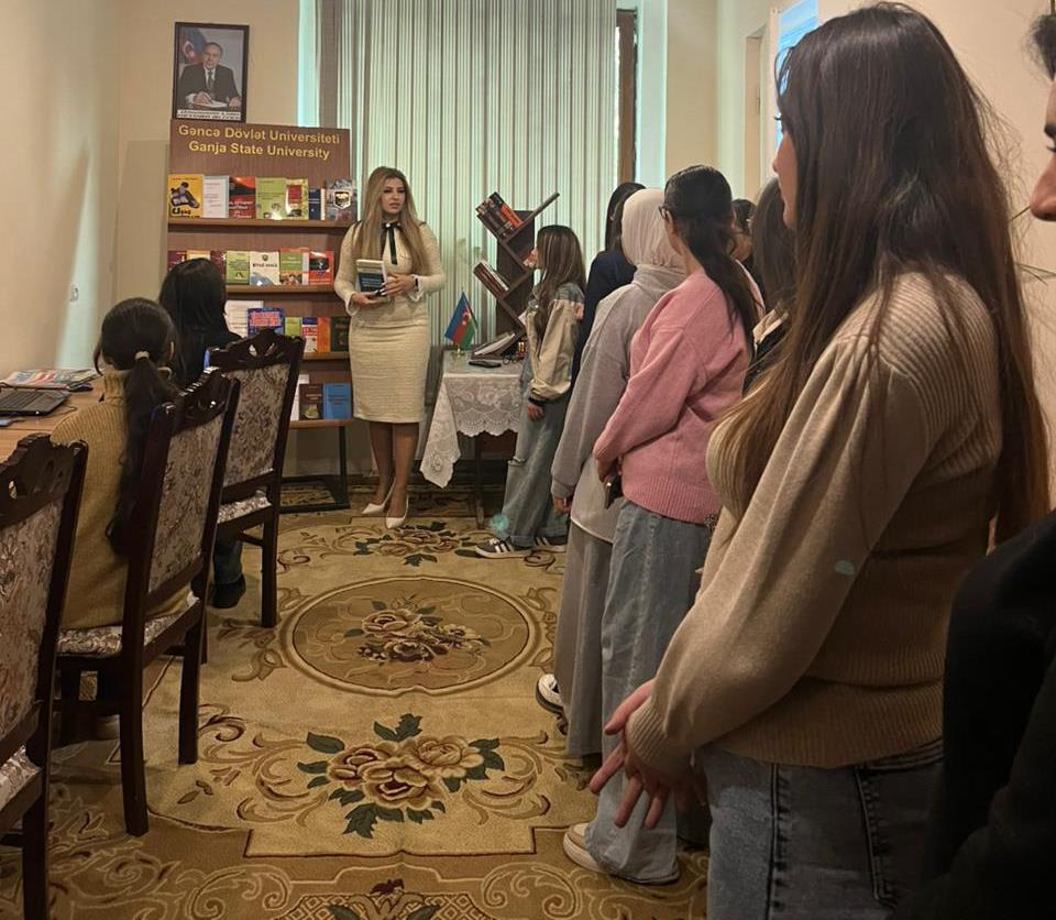 Ayşən Əhmədova tələbələrə yeni dərsliklər və dərs vəsaitləri haqqında geniş məlumat verib. Qeyd edilib ki, bu nəşrlər kafedralarla kitabxananın birgə əməkdaşlığı nəticəsində seçilərək, kitabxanada olmayan və ya nüsxəsi çatışmayan, son beş ildə nəşr olunmuş ədəbiyyatlardan ibarətdir.
