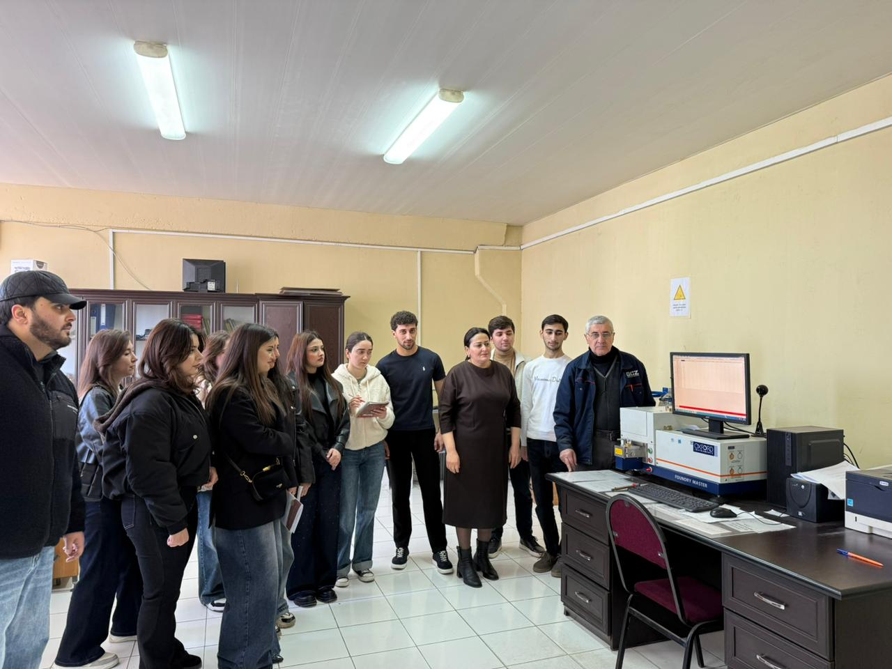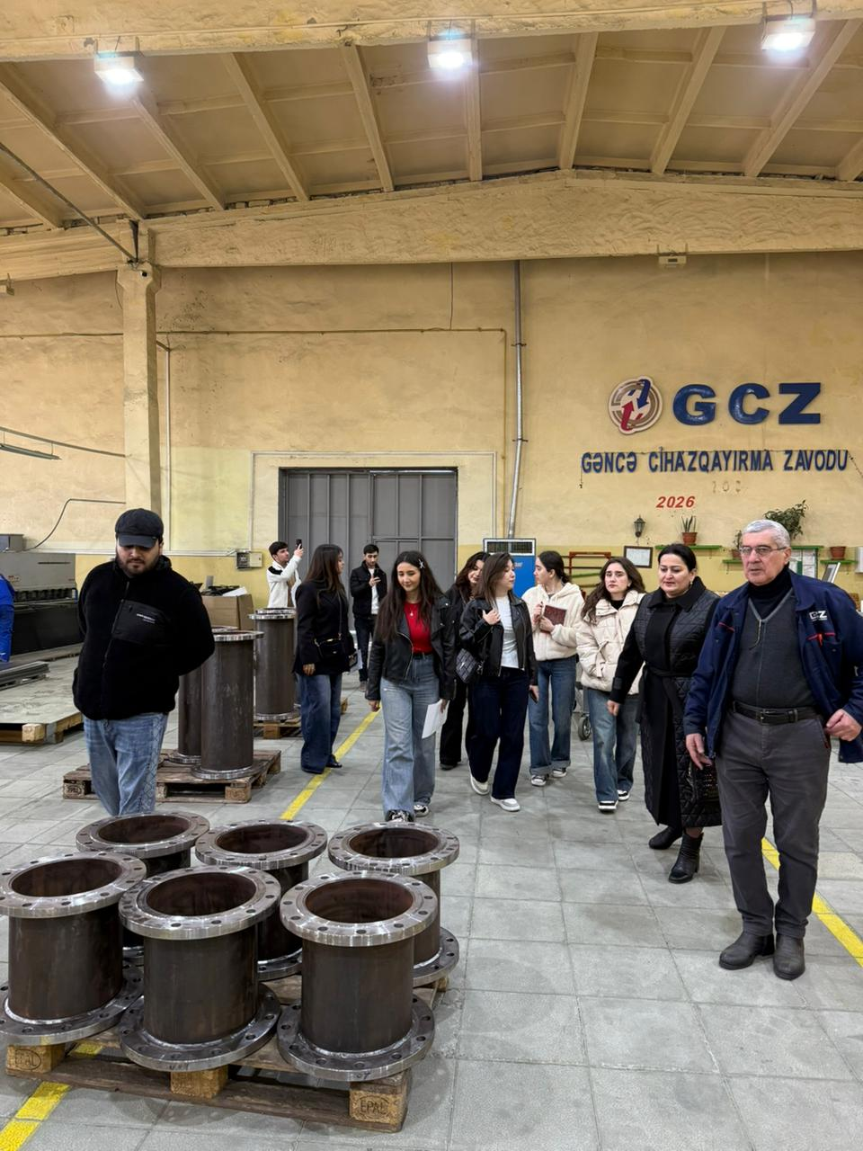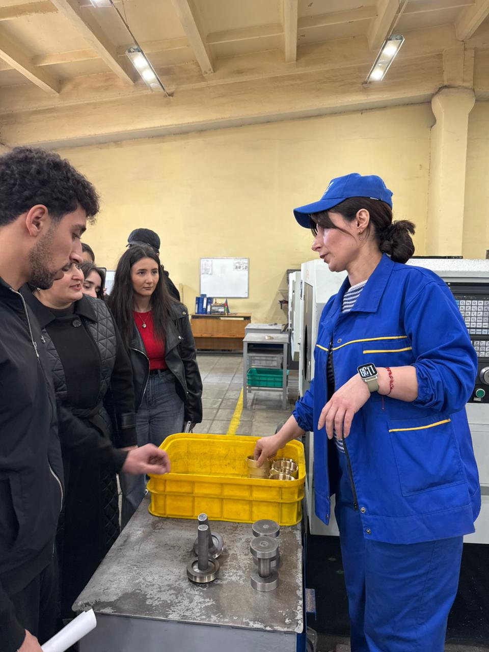 Daha sonra tələbələr zavodun istehsal üçün istifadə etdiyi ilkin məhsullarla yaxından tanış olublar, zavodun müxtəlif istehsal sahələri – metalların induksion əritmə sahəsi, spektrometr analizi laboratoriyası, metalların mexaniki emal sahəsi, plasmas məmulatlar sahəsində biliklərə yiyələniblər.