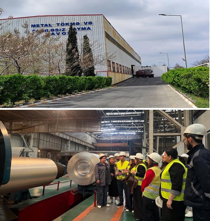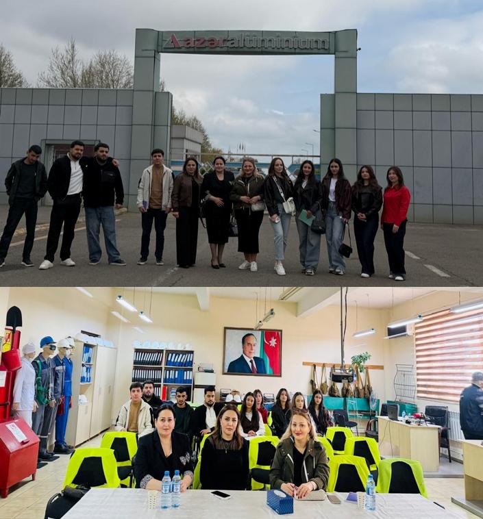 Gəncə Dövlət Universitetinin Kimya və biologiya fakültəsinin Kimya və Kimya mühəndisliyi ixtisaslarının Ⅳ kurs tələbələri “DET AL” Alüminium MMC-nin Gəncə alüminium zavod kompleksində istehsalat təcrübəsində iştirak edirlər.