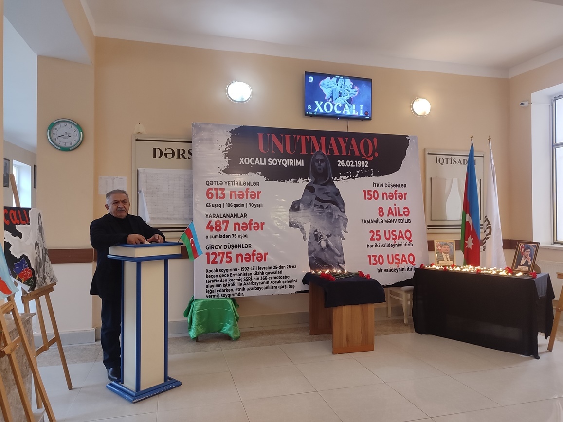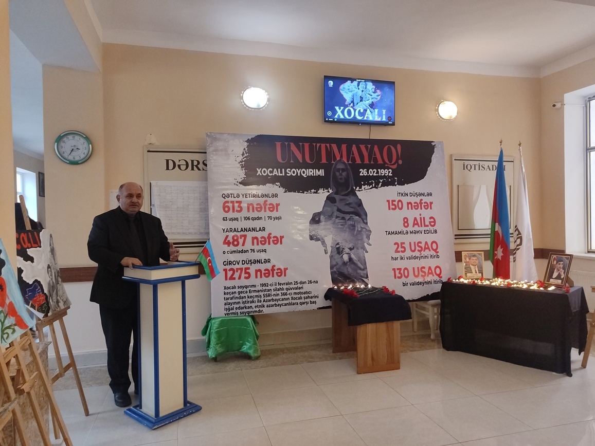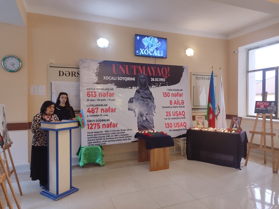 Universitetin Humanitar məsələlər üzrə prorektoru Gülsüm Fətəliyeva giriş sözü ilə çıxış edərək 34 il əvvəl Xocalıda törədilmiş insanlıq əleyhinə cinayətdən bəhs edib, bunun bir qətliam, soyqırımı olduğunu deyib. Bildirib ki, keçmiş sovet ordusunun 366-cı motoatıcı alayının iştirakı ilə erməni millətçiləri Xocalıda yaşından, cinsindən asılı olmayaraq dinc əhaliyə qarşı misli görünməmiş vəhşilik edib. Xocalı müsibəti ermənilərin zaman-zaman Azərbaycan-türk əhaliyə qarşı həyata keçirdikləri soyqırımı siyasətinin ən acı səhifələrindən biridir.